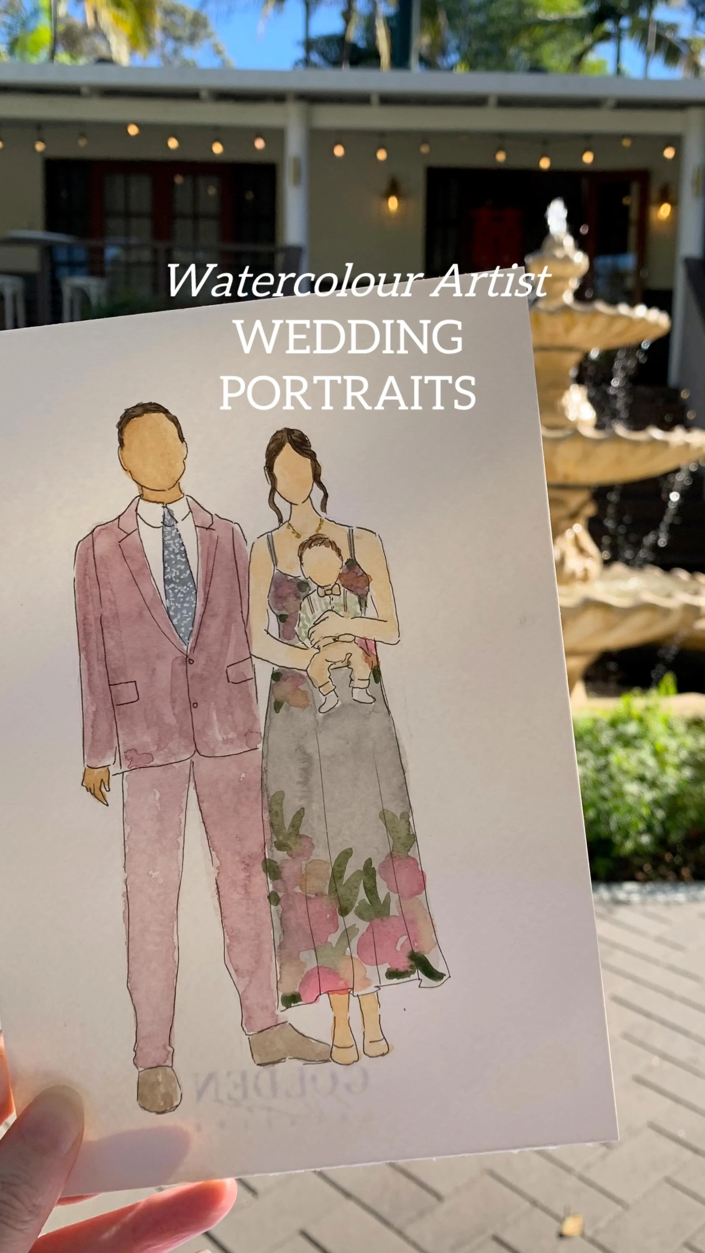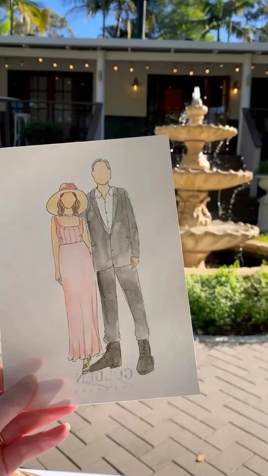 Enhance your special event by gifting your guests with their own watercolour portraits, providing entertainment and a timeless gift that captures the joy and elegance of your special day.